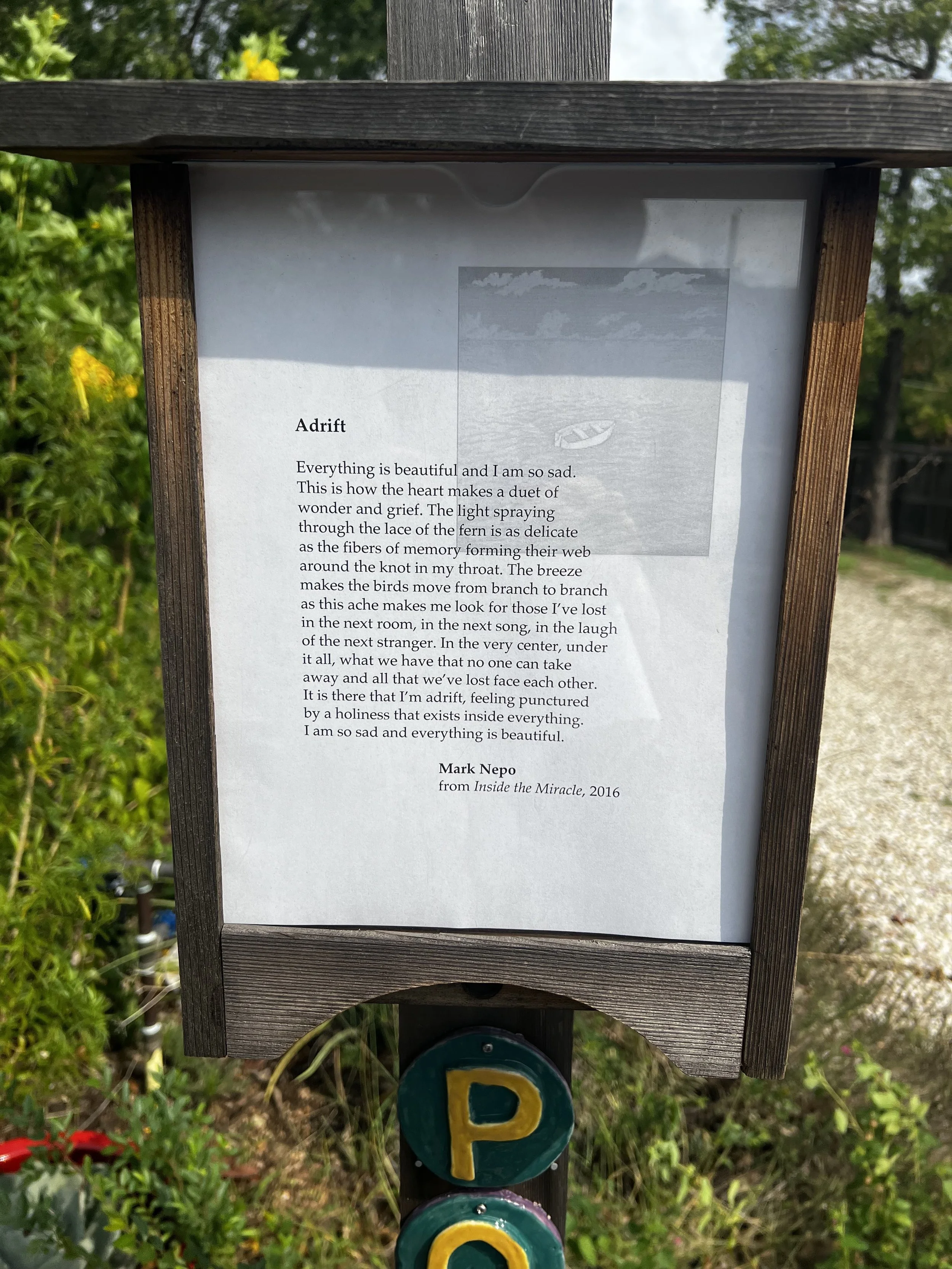 One of the things I’ve noted over these years of sharing poetry is that so many poems wrestle with the same themes, especially this: how to honor and celebrate the world while also being conscious and attentive to pain and suffering. In his poem “Adrift,” spiritual teacher Mark Nepo names this paradox directly. This October, with its terrible news and bright autumn color, has been beauty and sadness, sadness and beauty, all the way through.