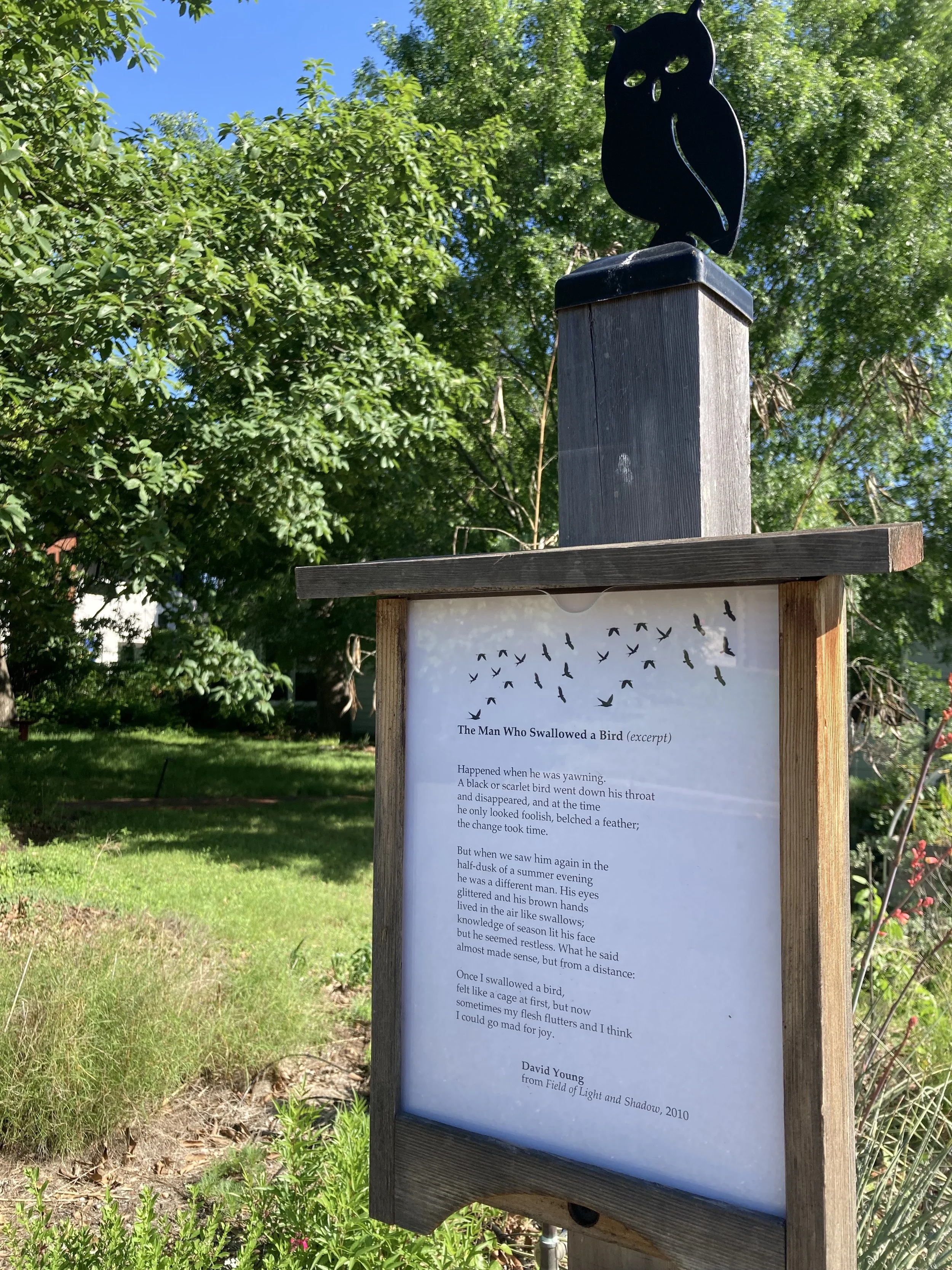 We spent Easter Sunday in Florida with my mom, donning the festive headpieces she’d made for the occasion and sharing chocolate mousse and apple and berry crumble for dessert. Back home, our pet sitter put Joy Harjo’s “Eagle Poem” into the box, a poem a chosen for a moment when Passover, Ramadan, and Easter coincided. The following weekend a friend shared this strange and charming David Young poem and I immediately prepared it for posting.